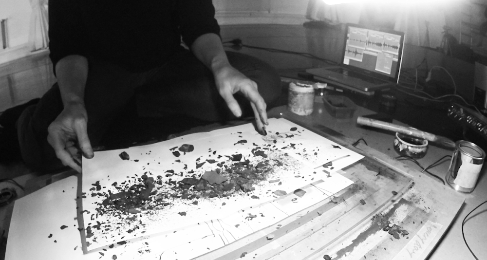 Who With Their Mouth Full of Flint is a multi-layered - infusion - performace where Hallveig’s sound drawings meet up and merge together with the work of Brussels based poet and dancer Billie Hanne